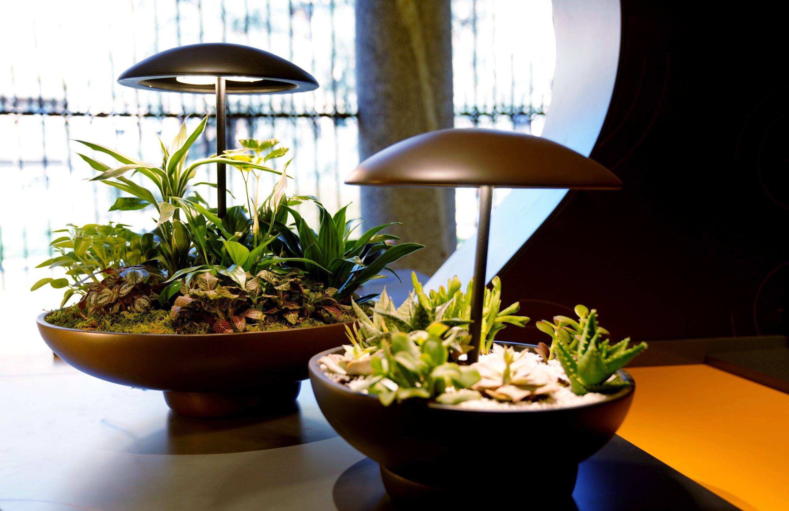 Garden: la lampada da tavolo con mini giardino, disegnata da Maurício D’Ávila per Geo Luz & Cerâmica, è